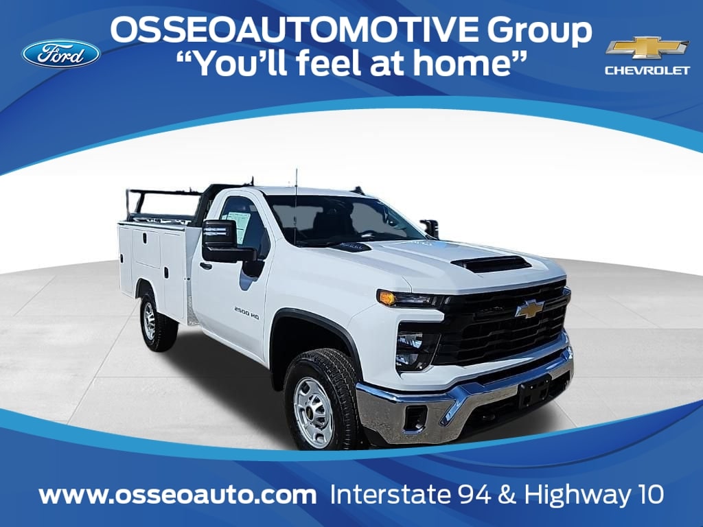 Summit White 2024 Chevrolet Silverado 2500HD Work Truck Commercial 4WD 10-Speed Automatic 6.6L V8 10-Speed Automatic, 4WD, Jet Black Vinyl.Nels Gunderson Chevrolet is very proud to offer this dependable 2024 Chevrolet Silverado 2500HD Work Truck in Summit White, beautifully equipped with Preferred Equipment Group 1WT (170 Amp Alternator, 2-Speed Electronic Shift Transfer Case, 3.5 Diagonal Monochromatic Display DIC, Black Front Bumper, Black Mirror Caps, Black Rear Bumper, Bluetooth® For Phone, Chevrolet Connected Access Capable, Compass, HD Rear Vision Camera, Locking Tailgate, Manual Tailgate Function w/No EZ Lift, Manual Tilt-Wheel Steering Column, OnStar & Chevrolet Connected Services Capable, Power Door Locks, Power Front Windows w/Driver Express Up/Down, Push Button Start, Remote Keyless Entry, Rubberized-Vinyl Floor Covering, Solar Absorbing Tinted Glass, Standard Tailgate, Wi-Fi Hotspot Capable, and Wireless Phone Projection), Suspension Package, 10-Speed Automatic, 4WD, Jet Black Vinyl, 2 Speakers, 2-Speaker Audio System Feature, 3.73 Rear Axle Ratio, 4-Wheel Disc Brakes, 720 Cold-Cranking Amps Heavy-Duty Battery, ABS brakes, Air Conditioning, AM/FM radio, Apple CarPlay/Android Auto, Auto High-beam Headlights, Brake assist, Chrome Front Bumper, Deep-Tinted Glass, Delay-off headlights, Driver door bin, Dual front impact airbags, Dual front side impact airbags, Durabed Pickup Bed, Electric Rear-Window Defogger, Electronic Cruise Control w/Set & Resume Speed, Electronic Stability Control, Front 40/20/40 Split-Bench Seats w/Lockable Storage, Front anti-roll bar, Front Center Armrest w/Storage, Front License Plate Kit, Front reading lights, Front wheel independent suspension, Fully automatic headlights, Illuminated entry, Low tire pressure warning, Occupant sensing airbag, Outside temperature display, Overhead airbag, Overhead console, Panic alarm, Passenger door bin, Passenger vanity mirror, Power steering, Power windows, Premium audio system: Chevrolet Infotainment 3, Radio: Chevrolet Infotainment 3 System, Rear step bumper, Remote keyless entry, Tachometer, Tilt steering wheel, Traction control, Trip computer, Upfitter Switch Kit (5), Variably intermittent wipers, Vinyl Seat Trim, Voltmeter, and Wheels: 17 Silver Painted Steel Backup Camera Bluetooth.