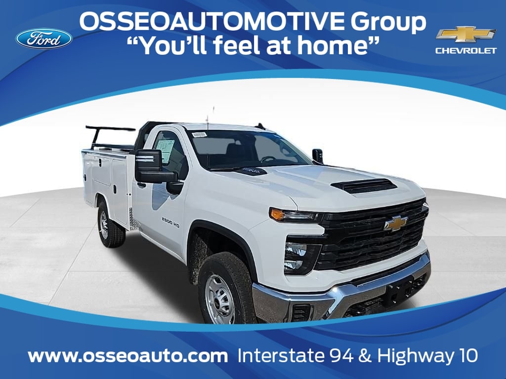 Summit White 2024 Chevrolet Silverado 2500HD Work Truck Commercial 4WD 10-Speed Automatic 6.6L V8 10-Speed Automatic, 4WD, Jet Black Vinyl.Nels Gunderson Chevrolet is proud to offer this hard-working 2024 Chevrolet Silverado 2500HD Work Truck in Summit White, beautifully equipped with Preferred Equipment Group 1WT (170 Amp Alternator, 2-Speed Electronic Shift Transfer Case, 3.5 Diagonal Monochromatic Display DIC, Black Front Bumper, Black Mirror Caps, Black Rear Bumper, Bluetooth® For Phone, Chevrolet Connected Access Capable, Compass, HD Rear Vision Camera, Locking Tailgate, Manual Tailgate Function w/No EZ Lift, Manual Tilt-Wheel Steering Column, OnStar & Chevrolet Connected Services Capable, Power Door Locks, Power Front Windows w/Driver Express Up/Down, Push Button Start, Remote Keyless Entry, Rubberized-Vinyl Floor Covering, Solar Absorbing Tinted Glass, Standard Tailgate, Wi-Fi Hotspot Capable, and Wireless Phone Projection), Suspension Package, 10-Speed Automatic, 4WD, Jet Black Vinyl, 2 Speakers, 2-Speaker Audio System Feature, 3.73 Rear Axle Ratio, 4-Wheel Disc Brakes, 720 Cold-Cranking Amps Heavy-Duty Battery, ABS brakes, Air Conditioning, AM/FM radio, Apple CarPlay/Android Auto, Auto High-beam Headlights, Brake assist, Chrome Front Bumper, Deep-Tinted Glass, Delay-off headlights, Driver door bin, Dual front impact airbags, Dual front side impact airbags, Durabed Pickup Bed, Electric Rear-Window Defogger, Electronic Cruise Control w/Set & Resume Speed, Electronic Stability Control, Front 40/20/40 Split-Bench Seats w/Lockable Storage, Front anti-roll bar, Front Center Armrest w/Storage, Front License Plate Kit, Front reading lights, Front wheel independent suspension, Fully automatic headlights, Illuminated entry, Low tire pressure warning, Occupant sensing airbag, Outside temperature display, Overhead airbag, Overhead console, Panic alarm, Passenger door bin, Passenger vanity mirror, Power steering, Power windows, Premium audio system: Chevrolet Infotainment 3, Radio: Chevrolet Infotainment 3 System, Rear step bumper, Remote keyless entry, Tachometer, Tilt steering wheel, Traction control, Trip computer, Upfitter Switch Kit (5), Variably intermittent wipers, Vinyl Seat Trim, Voltmeter, and Wheels: 17 Silver Painted Steel Backup Camera Bluetooth.
