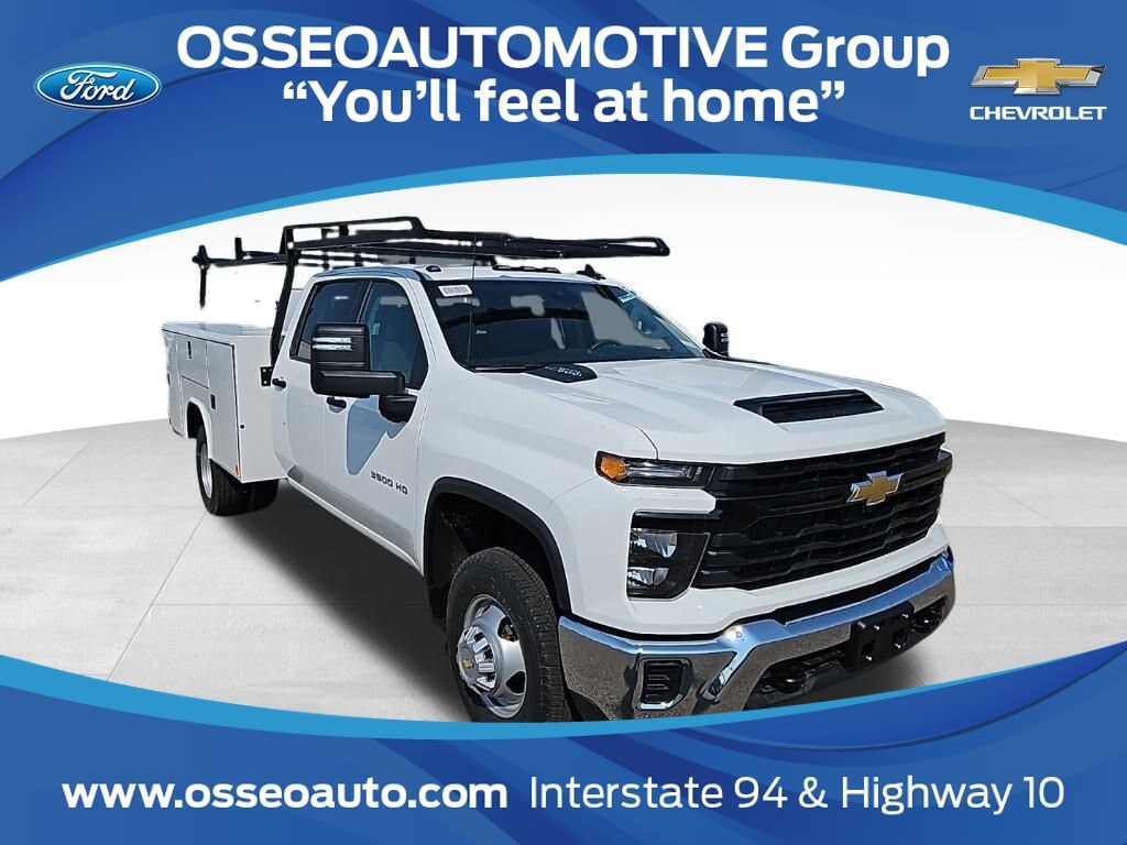 Nels Gunderson Chevrolet is proud to offer this rock solid 2024 Chevrolet Silverado 3500HD Work Truck in Summit White, beautifully equipped with Preferred Equipment Group 1WT (170 Amp Alternator, 2-Speed Electronic Shift Transfer Case, 3.5 Diagonal Monochromatic Display DIC, Black Front Bumper, Black Mirror Caps, Bluetooth® For Phone, Compass Located In Instrument Cluster, High-Visibility Molded in Black Outside Mirrors, Manual Tilt-Wheel Steering Column, Power Rear Windows w/Express Down, Rear 60/40 Folding Bench Seat (Folds Up), Rubberized-Vinyl Floor Covering, and Solar Absorbing Tinted Glass), Snow Plow Prep Package (220 Amp Alternator), Suspension Package, WT Convenience Package (Deep-Tinted Glass, Electric Rear-Window Defogger, and Steering Wheel Mounted Electronic Cruise Control), 10-Speed Automatic, 4WD, Jet Black Vinyl, 120-Volt (400 Watts) Interior Power Outlet, 17 Painted Steel Wheels, 3.73 Rear Axle Ratio, 4-Way Manual Driver Seat Adjuster, 4-Way Manual Passenger Seat Adjuster, 4-Wheel Disc Brakes, 6 Speakers, 6-Speaker Audio System Feature, ABS brakes, Air Conditioning, AM/FM radio, Apple CarPlay/Android Auto, Auto High-beam Headlights, Auto-Dimming Inside Rear-View Mirror, Brake assist, Compass, Delay-off headlights, Driver door bin, Dual front impact airbags, Dual front side impact airbags, Dual Rear USB Ports (Charge Only), Dual rear wheels, Electronic Stability Control, Engine Block Heater, Front 40/20/40 Split-Bench Seat, Front anti-roll bar, Front Center Armrest w/Storage, Front Chrome Bumper, Front Grille Bar w/Black Mesh Inserts, Front License Plate Kit, Front reading lights, Front wheel independent suspension, Fully automatic headlights, Heavy-Duty 80 Amp-Hr Battery, Illuminated entry, Low tire pressure warning, Manual Tilt Inside Rearview Mirror, Occupant sensing airbag, OnStar & Chevrolet Connected Services Capable, Outside temperature display, Overhead airbag, Overhead console, Panic alarm, Passenger door bin, Passenger vanity mirror, Perimeter Lighting, Power steering, Power windows, Power-Adjustable Outside Mirrors, Premium audio system: Chevrolet Infotainment 3, Radio: Chevrolet Infotainment 3 System, Rear reading lights, Remote keyless entry, SiriusXM Radio, Split folding rear seat, Tachometer, Tilt steering wheel, Traction control, Trip computer, Upfitter Switch Kit (5), Variably intermittent wipers, Vinyl Seat Trim, and Voltmeter Backup Camera Bluetooth.