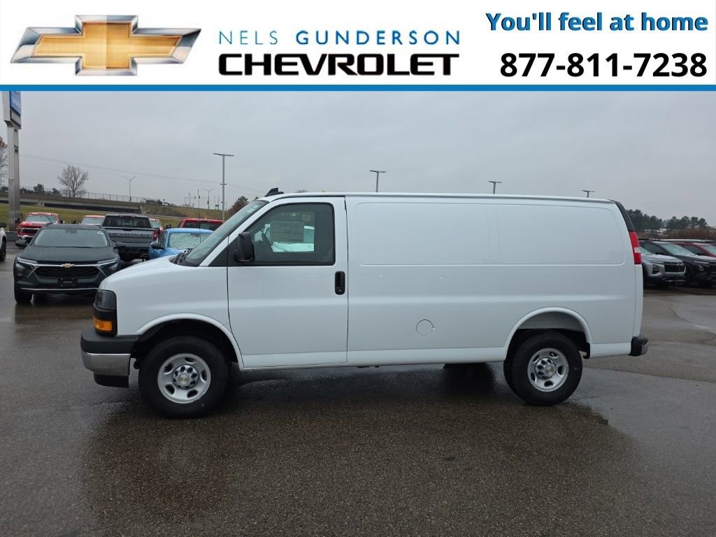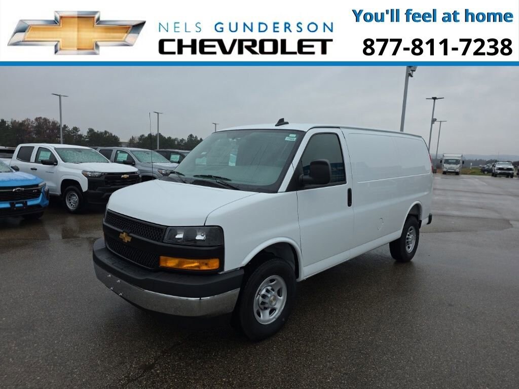 Summit White 2025 Chevrolet Express 2500 Work Van Commercial RWD Automatic with Overdrive 6.6L V8Nels Gunderson Chevrolet is very proud to offer this fantastic 2025 Chevrolet Express 2500 Work Van in Summit White, beautifully equipped with Driver Convenience Package (Cruise Control and Tilt Steering Wheel), Heavy-Duty Trailering Equipment, 150 Amp Alternator, 16 x 6.5 Steel Wheels, 2 Speakers, 3.42 Rear Axle Ratio, 4-Wheel Disc Brakes, 8-Point Digital Compass, ABS brakes, Air Conditioning, AM/FM radio, AM/FM Stereo w/MP3 Player, Auxiliary Lighting, Bluetooth Phone Connection Kit (LPO), Delay-off headlights, Driver & Front Passenger High-Back Bucket Seats, Driver & Front Passenger Vinyl Visors, Driver door bin, Driver's Seat Mounted Armrest, Dual front impact airbags, Dual front side impact airbags, Electronic Stability Control, Engine Cover Console w/Swing-Out Storage Bin, Exterior Parking Camera Rear, Front & Rear Chrome Bumpers w/Step-Pad, Front anti-roll bar, Front Bucket Seats, Front Reclining High-Back Bucket Seats, Front wheel independent suspension, Full-Length Black Rubberized-Vinyl Floor Covering, Fully automatic headlights, Heated door mirrors, Heavy-Duty Rear Locking Differential, Low tire pressure warning, Occupant sensing airbag, Outside Temperature Display, Overhead airbag, Passenger cancellable airbag, Passenger door bin, Passenger seat mounted armrest, Power door mirrors, Power steering, Power windows, Reclining Front Bucket Seats w/Inboard Armrests, Remote Keyless Entry, Single-Zone Manual Air Conditioning, Tachometer, Theft Alarm Notification, Traction control, Trip computer, Variably intermittent wipers, Vinyl Seat Trim, and Voltmeter Backup Camera Bluetooth.