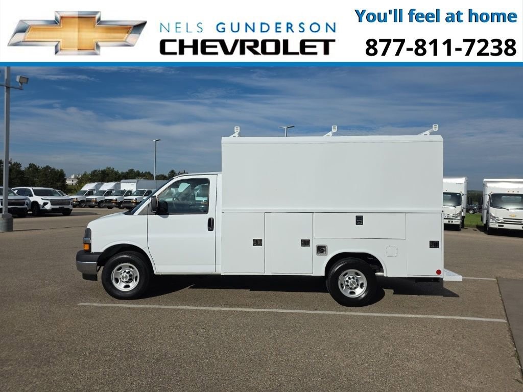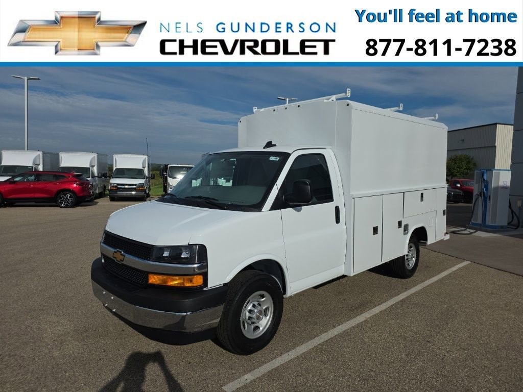Summit White 2025 Chevrolet Express 3500 Work Van Commercial RWD 8-Speed Automatic 6.6L V8Nels Gunderson Chevrolet is pumped up to offer this stunning 2025 Chevrolet Express 3500 Work Van in Summit White, beautifully equipped with Chrome Appearance Package (Chrome Grille and Front Chrome Bumper w/Step-Pad), Driver Convenience Package (Tilt Steering Wheel), Power Convenience Package (Power Door Locks w/Lock-Out Protection and Power Windows), Preferred Equipment Group 1WT, 2 Speakers, 3.42 Rear Axle Ratio, 4-Wheel Disc Brakes, ABS brakes, Air Conditioning, AM/FM radio, Black Power-Adjustable Heated Outside Mirrors, Cruise Control, Delay-off headlights, Driver & Front Passenger High-Back Bucket Seats, Driver & Front Passenger Vinyl Visors, Driver door bin, Driver's Seat Mounted Armrest, Dual front impact airbags, Dual front side impact airbags, Electronic Stability Control, Engine Cover Console w/Swing-Out Storage Bin, Exterior Parking Camera Rear, Front anti-roll bar, Front Bucket Seats, Front wheel independent suspension, Fully automatic headlights, Heavy-Duty Locking Rear Differential, Inside Rearview Mirror w/Rr Vision Camera Display, Low tire pressure warning, Occupant sensing airbag, Outside Temperature Display, Overhead airbag, Passenger cancellable airbag, Passenger door bin, Passenger seat mounted armrest, Power steering, Radio: AM/FM Stereo w/MP3 Player & Digital Clock, Reclining High-Back Bucket Seats w/Inboard Armrests, Remote Keyless Entry, Single Rear Wheel Configuration, Tachometer, Theft Alarm Notification, Traction control, Trailering Wire Harness, Trip computer, Variably intermittent wipers, Vinyl Seat Trim, Voltmeter, and Wheels: 16 x 6.5 8-Lug Painted Steel HD (4) Backup Camera Bluetooth. Recent Arrival!