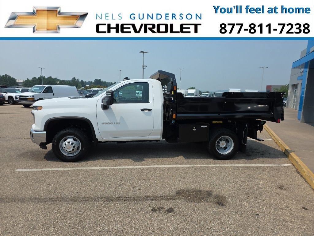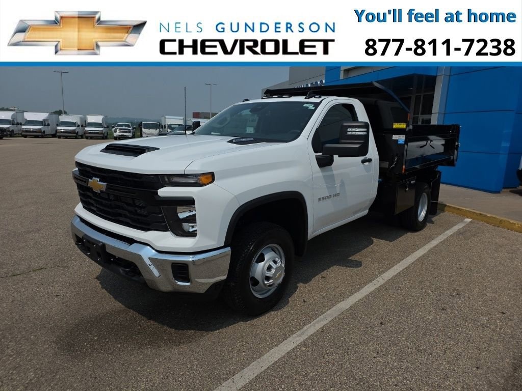 Summit White 2025 Chevrolet Silverado 3500HD Work Truck Commercial 4WD 10-Speed Automatic Duramax 6.6L V8 Turbodiesel 10-Speed Automatic, 4WD, Jet Black Vinyl.Nels Gunderson Chevrolet is excited to offer this hard-working 2025 Chevrolet Silverado 3500HD Work Truck in Summit White, beautifully equipped with Preferred Equipment Group 1WT (170 Amp Alternator, 2-Speed Electronic Shift Transfer Case, 3.5 Diagonal Monochromatic Display DIC, Black Front Bumper, Black Mirror Caps, Bluetooth® For Phone, Compass Located In Instrument Cluster, Manual Tilt-Wheel Steering Column, Rubberized-Vinyl Floor Covering, Solar Absorbing Tinted Glass, and Steering Wheel Mounted Electronic Cruise Control), Snow Plow Prep Package (220 Amp Alternator), Suspension Package, WT Convenience Package (Deep-Tinted Glass and Electric Rear-Window Defogger), 10-Speed Automatic, 4WD, Jet Black Vinyl, 120-Volt (400 Watts) Interior Power Outlet, 17 Painted Steel Wheels, 18 Painted Steel Wheels, 2 Speakers, 2-Speaker Audio System Feature, 4-Way Manual Driver Seat Adjuster, 4-Way Manual Passenger Seat Adjuster, 4-Wheel Disc Brakes, 40 Gallon (151L) Rear Only Fuel Tank, ABS brakes, Air Conditioning, AM/FM radio, Auto High-beam Headlights, Auto-Dimming Inside Rear-View Mirror, Brake assist, Compass, Delay-off headlights, Driver door bin, Dual front impact airbags, Dual front side impact airbags, Dual rear wheels, Electronic Stability Control, Engine Block Heater, Exhaust Brake, Front 40/20/40 Split-Bench Seat, Front anti-roll bar, Front Center Armrest w/Storage, Front Chrome Bumper, Front Grille Bar w/Black Mesh Inserts, Front License Plate Kit, Front reading lights, Front wheel independent suspension, Fully automatic headlights, Heavy-Duty 80 Amp-Hr Battery, Illuminated entry, Low tire pressure warning, Manual Tilt Inside Rearview Mirror, Occupant sensing airbag, OnStar Services Capable, Outside temperature display, Overhead airbag, Overhead console, Panic alarm, Passenger door bin, Passenger vanity mirror, Perimeter Lighting, Power steering, Power windows, Power-Adjustable Outside Mirrors, Radio: Chevrolet Infotainment 3 System, Remote keyless entry, SiriusXM Trial Subscription, Speed control, Tachometer, Tilt steering wheel, Traction control, Trip computer, Upfitter Switch Kit (5), Variably intermittent wipers, Vinyl Seat Trim, Voltmeter, and Winter Grille Cover Backup Camera Bluetooth. Price includes: $500 - Customer Cash. Exp. 11/03/2025