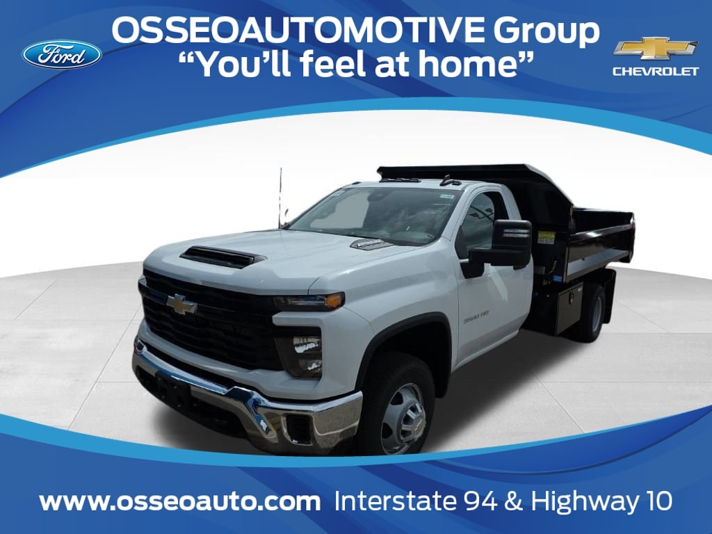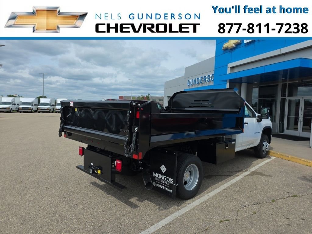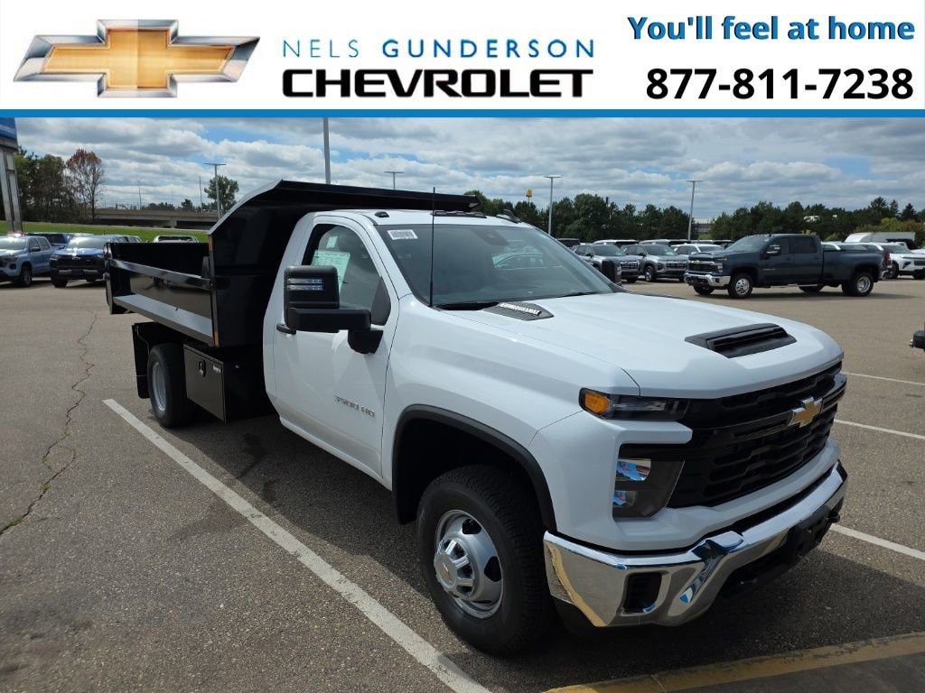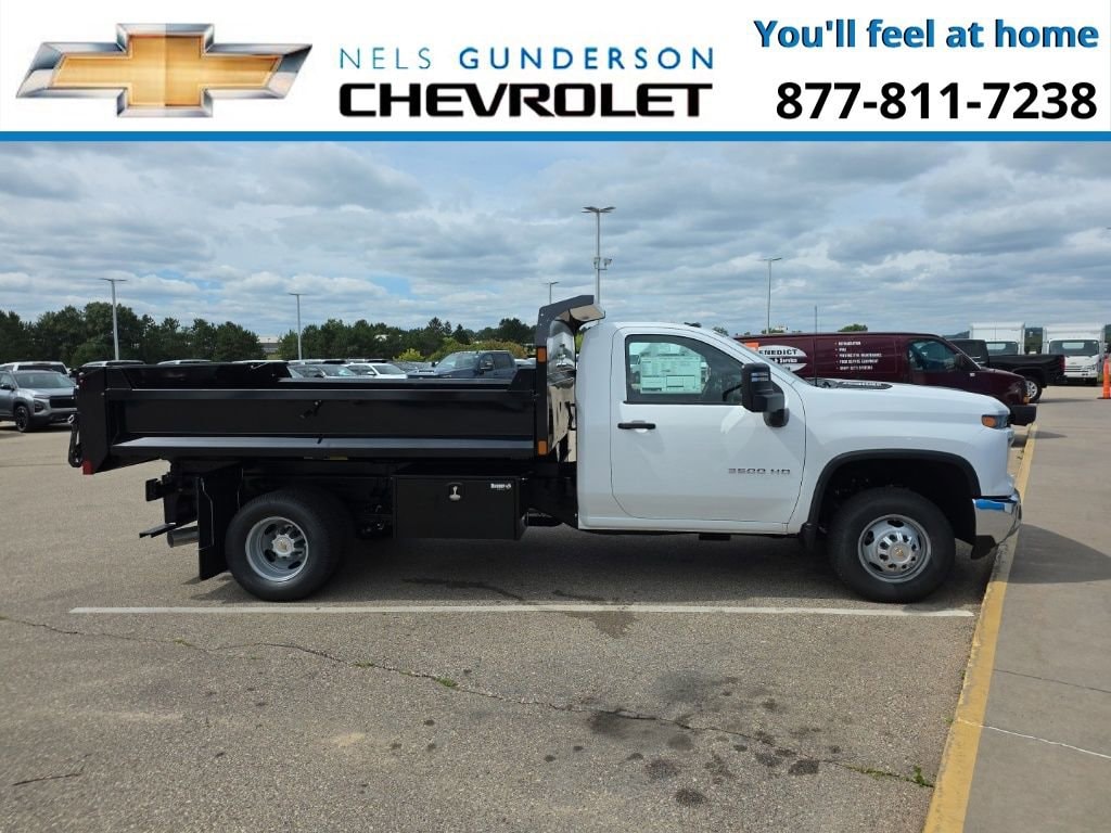 Summit White 2025 Chevrolet Silverado 3500HD Work Truck Commercial 4WD 10-Speed Automatic Duramax 6.6L V8 Turbodiesel 10-Speed Automatic, 4WD, Jet Black Vinyl.Nels Gunderson Chevrolet is very proud to offer this hard-working 2025 Chevrolet Silverado 3500HD Work Truck in Summit White, beautifully equipped with Preferred Equipment Group 1WT (170 Amp Alternator, 2-Speed Electronic Shift Transfer Case, 3.5 Diagonal Monochromatic Display DIC, Black Front Bumper, Black Mirror Caps, Bluetooth® For Phone, Compass Located In Instrument Cluster, Manual Tilt-Wheel Steering Column, Rubberized-Vinyl Floor Covering, Solar Absorbing Tinted Glass, and Steering Wheel Mounted Electronic Cruise Control), Snow Plow Prep Package (220 Amp Alternator), Suspension Package, WT Convenience Package (Deep-Tinted Glass and Electric Rear-Window Defogger), 10-Speed Automatic, 4WD, Jet Black Vinyl, 120-Volt (400 Watts) Interior Power Outlet, 17 Painted Steel Wheels, 18 Painted Steel Wheels, 2 Speakers, 2-Speaker Audio System Feature, 4-Way Manual Driver Seat Adjuster, 4-Way Manual Passenger Seat Adjuster, 4-Wheel Disc Brakes, 40 Gallon (151L) Rear Only Fuel Tank, ABS brakes, Air Conditioning, AM/FM radio, Auto High-beam Headlights, Auto-Dimming Inside Rear-View Mirror, Brake assist, Compass, Delay-off headlights, Driver door bin, Dual front impact airbags, Dual front side impact airbags, Dual rear wheels, Electronic Stability Control, Engine Block Heater, Exhaust Brake, Front 40/20/40 Split-Bench Seat, Front anti-roll bar, Front Center Armrest w/Storage, Front Chrome Bumper, Front Grille Bar w/Black Mesh Inserts, Front License Plate Kit, Front reading lights, Front wheel independent suspension, Fully automatic headlights, Heavy-Duty 80 Amp-Hr Battery, Illuminated entry, Low tire pressure warning, Manual Tilt Inside Rearview Mirror, Occupant sensing airbag, OnStar Services Capable, Outside temperature display, Overhead airbag, Overhead console, Panic alarm, Passenger door bin, Passenger vanity mirror, Perimeter Lighting, Power steering, Power windows, Power-Adjustable Outside Mirrors, Radio: Chevrolet Infotainment 3 System, Remote keyless entry, SiriusXM Trial Subscription, Speed control, Tachometer, Tilt steering wheel, Traction control, Trip computer, Upfitter Switch Kit (5), Variably intermittent wipers, Vinyl Seat Trim, Voltmeter, and Winter Grille Cover Backup Camera Bluetooth. Price includes: $500 - Customer Cash. Exp. 11/03/2025