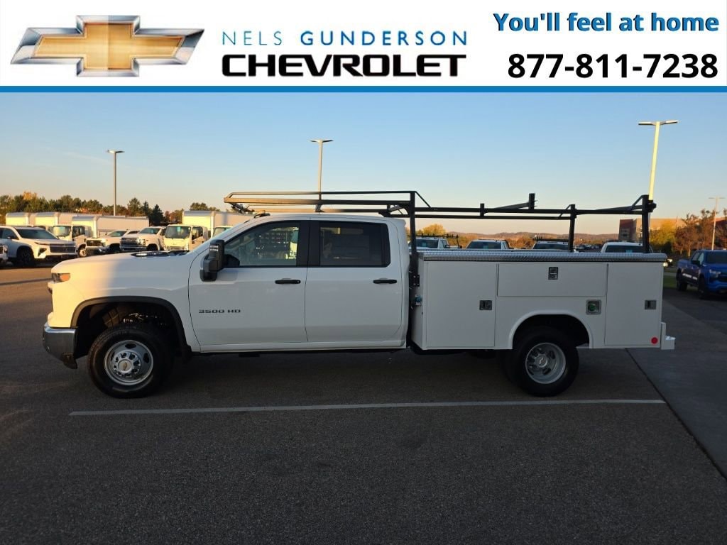 Nels Gunderson Chevrolet is pumped up to offer this hard-working 2025 Chevrolet Silverado 3500HD Work Truck in Summit White, beautifully equipped with Preferred Equipment Group 1WT (170 Amp Alternator, 2-Speed Electronic Shift Transfer Case, 3.5 Diagonal Monochromatic Display DIC, Black Front Bumper, Black Mirror Caps, Bluetooth® For Phone, Compass Located In Instrument Cluster, High-Visibility Molded in Black Outside Mirrors, Manual Tilt-Wheel Steering Column, Power Rear Windows w/Express Down, Rear 60/40 Folding Bench Seat (Folds Up), Rubberized-Vinyl Floor Covering, Solar Absorbing Tinted Glass, and Steering Wheel Mounted Electronic Cruise Control), Snow Plow Prep Package (220 Amp Alternator), Suspension Package, WT Convenience Package (Deep-Tinted Glass and Electric Rear-Window Defogger), 10-Speed Automatic, 4WD, Jet Black Vinyl, 120-Volt (400 Watts) Interior Power Outlet, 17 Painted Steel Wheels, 18 Painted Steel Wheels, 4-Way Manual Driver Seat Adjuster, 4-Way Manual Passenger Seat Adjuster, 4-Wheel Disc Brakes, 40 Gallon (151L) Rear Only Fuel Tank, 6 Speakers, 6-Speaker Audio System Feature, ABS brakes, Air Conditioning, AM/FM radio, Auto High-beam Headlights, Auto-Dimming Inside Rear-View Mirror, Brake assist, Compass, Delay-off headlights, Driver door bin, Dual front impact airbags, Dual front side impact airbags, Dual Rear USB Ports (Charge Only), Dual rear wheels, Electronic Stability Control, Engine Block Heater, Exhaust Brake, Front 40/20/40 Split-Bench Seat, Front anti-roll bar, Front Center Armrest w/Storage, Front Chrome Bumper, Front Grille Bar w/Black Mesh Inserts, Front License Plate Kit, Front reading lights, Front wheel independent suspension, Fully automatic headlights, Heavy-Duty 80 Amp-Hr Battery, Illuminated entry, Low tire pressure warning, Manual Tilt Inside Rearview Mirror, Occupant sensing airbag, OnStar Services Capable, Outside temperature display, Overhead airbag, Overhead console, Panic alarm, Passenger door bin, Passenger vanity mirror, Perimeter Lighting, Power steering, Power windows, Power-Adjustable Outside Mirrors, Radio: Chevrolet Infotainment 3 System, Rear reading lights, Remote keyless entry, SiriusXM Trial Subscription, Speed control, Split folding rear seat, Tachometer, Tilt steering wheel, Traction control, Trip computer, Upfitter Switch Kit (5), Variably intermittent wipers, Vinyl Seat Trim, Voltmeter, and Winter Grille Cover Backup Camera Bluetooth. Price includes: $1000 - Customer Cash. Exp. 01/02/2026