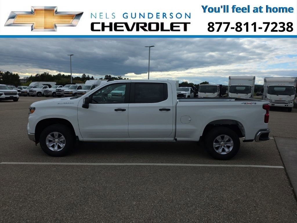Summit White 2026 Chevrolet Silverado 1500 WT Commercial 4WD 8-Speed Automatic 2.7L I4 Turbocharged DOHC 16V LEV3-SULEV30 310hp 8-Speed Automatic, 4WD, Black Cloth.Nels Gunderson Chevrolet is very proud to offer this dependable 2026 Chevrolet Silverado 1500 WT in Summit White, beautifully equipped with Preferred Equipment Group 1WT (3.5 Monochromatic Display Driver Info Center, 4-Way Manual Driver Seat Adjuster, Black (Semi-Gloss) Front Bumper, Black (Semi-Gloss) Rear Bumper, Black Manual Outside Mirrors, Bluetooth® For Phone, Electronic Cruise Control, Front Frame-Mounted Black Recovery Hooks, HD Rear Vision Camera, Inside Rear-View Mirror w/Tilt, Locking Tailgate, Manual Tailgate Function w/No EZ Lift, Manual Tilt Wheel Steering Column, OnStar Services Capable, Power Front Windows w/Driver Express Up/Down, Power Front Windows w/Passenger Express Down, Power Rear Windows w/Express Down, Rear 60/40 Folding Bench Seat (Folds Up), Remote Keyless Entry, Rubberized-Vinyl Floor Covering, SiriusXM Delete, Solar Absorbing Tinted Glass, Standard Tailgate, Teen Driver, Tire Pressure Monitoring System, and Wi-Fi Hot Spot Capable), Standard Suspension Package, Trailering Package (Hitch Guidance), Work Truck Package (Heavy-Duty Air Filter), WT Convenience Package (Deep-Tinted Glass, Electric Rear-Window Defogger, and Heated Power-Adjustable Outside Mirrors), WT Safety Package (Front Chrome Bumper, High Gloss Black Mirror Caps, Lane Change Alert w/Side Blind Zone Alert, Perimeter Lighting, Rear Chrome Bumper, Rear Cross Traffic Braking, Rear Pedestrian Alert, and Ultrasonic Front & Rear Park Assist), WT Value Package, 8-Speed Automatic, 4WD, Black Cloth, 120-Volt Bed Mounted Power Outlet, 120-Volt Interior Power Outlet, 220 Amp Alternator, 3.42 Rear Axle Ratio, 4-Wheel Disc Brakes, 40/20/40 Front Split-Bench Seat, 6 Speakers, 6-Speaker Audio System, ABS brakes, Air Conditioning, Apple CarPlay/Android Auto, Auto High-beam Headlights, Auto-Locking Rear Differential, Automatic Emergency Braking, Brake assist, Compass, Delay-off headlights, Driver door bin, Dual front impact airbags, Dual front side impact airbags, Dual Rear USB Ports (Charge Only), Electronic Stability Control, Emergency communication system: OnStar, EZ Lift Power Lock & Release Tailgate, Following Distance Indicator, Forward Collision Alert, Front anti-roll bar, Front Center Armrest w/Storage, Front License Plate Kit, Front Pedestrian Braking, Front reading lights, Front wheel independent suspension, Fully automatic headlights, Illuminated entry, Integrated Trailer Brake Controller, IntelliBeam Automatic High Beam On/Off, Lane Keep Assist w/Lane Departure Warning, LED Cargo Area Lighting, Low tire pressure warning, Occupant sensing airbag, Outside temperature display, Overhead airbag, Overhead console, Panic alarm, Passenger door bin, Passenger vanity mirror, Power steering, Power windows, Premium audio system: Chevrolet Infotainment 3, Radio data system, Radio: Chevrolet Infotainment 3 System, Rear reading lights, Rear step bumper, Remote keyless entry, Speed control, Speed-sensing steering, Split folding rear seat, Tachometer, Tilt steering wheel, Traction control, Trip computer, Variably intermittent wipers, Vinyl Seat Trim, Voltmeter, Wheels: 17 x 8 Bright Silver Painted Aluminum, and Wheels: 17 x 8 Ultra Silver Painted Steel Backup Camera Bluetooth. Price includes: $1000 - Bonus Cash. Exp. 11/03/2025 $1750 - Customer Cash. Exp. 11/03/2025