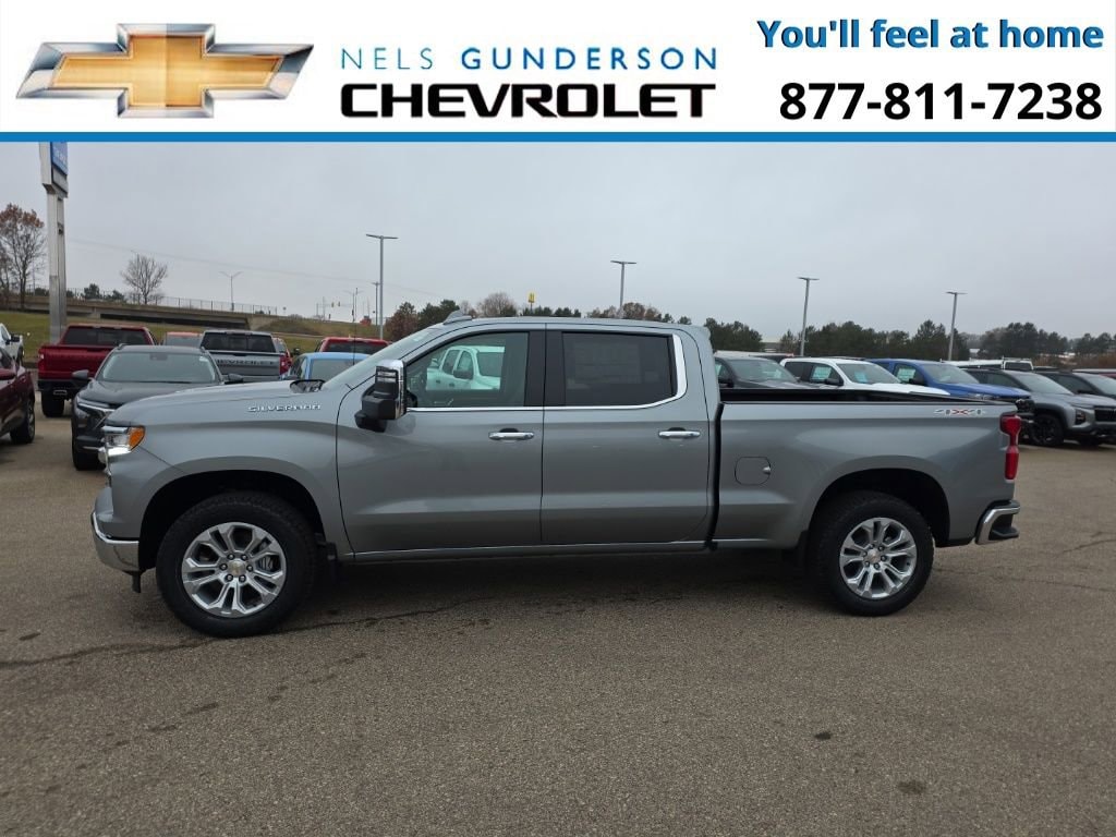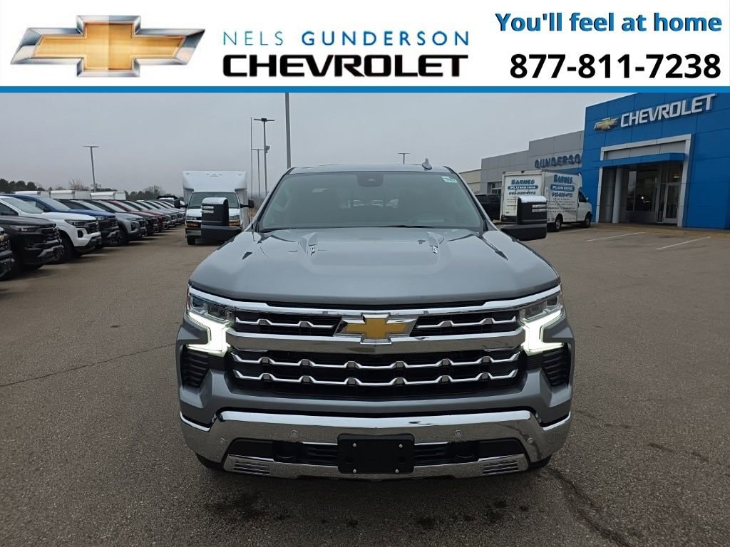 Sterling Gray Metallic 2026 Chevrolet Silverado 1500 LTZ 4WD 10-Speed Automatic EcoTec3 6.2L V8 10-Speed Automatic, 4WD, Jet Black Leather.Nels Gunderson Chevrolet is pumped up to offer this rock solid 2026 Chevrolet Silverado 1500 LTZ in Sterling Gray Metallic, beautifully equipped with High Capacity Suspension Package, LTZ Convenience Package (2 USB Data Ports, Floor Mounted Center Console, Power Tilt & Telescoping Steering Column, Premium Bose 7-Speaker Sound System, Ventilated Driver & Front Passenger Seats, and Wireless Charging), LTZ Convenience Package II (2nd Row Heated Outboard Seats, Adaptive Cruise Control, Power Sliding Rear Window w/Rear Defogger, and Universal Home Remote), LTZ Plus Package, LTZ Premium Package (Power Sunroof), Max Trailering Package (Enhanced Cooling Radiator, Heavier Duty Rear Springs, and Increased RGAWR), Safety Package (HD Surround Vision, Perimeter Lighting, Rear Cross Traffic Braking, Rear Pedestrian Alert, Safety Alert Seat, Trailer Camera Provisions, Trailer Side Blind Zone Alert, and Ultrasonic Front & Rear Park Assist), Technology Package (15 Diagonal Multicolor Head-Up Display, Bed View Camera, and Rear Camera Mirror), Trailering Package (Hitch Guidance), Up-Level Rear Seat w/Storage Package, 10-Speed Automatic, 4WD, Jet Black Leather, 10-Way Power Driver Seat w/Lumbar, 10-Way Power Passenger Seat Adjuster w/Lumbar, 12.3 Multicolor Reconfigurable Digital Display, 120-Volt Bed Mounted Power Outlet, 120-Volt Interior Power Outlet, 170 Amp Alternator, 3.23 Rear Axle Ratio, 4-Wheel Disc Brakes, 7 Speakers, ABS brakes, Air Conditioning, All-Weather Floor Liner (LPO), Alloy wheels, AM/FM radio: SiriusXM with 360L, Apple CarPlay/Android Auto, Auto High-beam Headlights, Auto-dimming door mirrors, Auto-Dimming Inside Rear-View Mirror, Auto-dimming Rear-View mirror, Auto-Locking Rear Differential, Automatic Emergency Braking, Automatic temperature control, Bluetooth® For Phone, Brake assist, Bumpers: chrome, Chevytec Spray-On Black Bedliner, Chrome Mirror Caps, Color-Keyed Carpeting Floor Covering, Compass, Deep-Tinted Glass, Delay-off headlights, Driver door bin, Driver Memory, Driver vanity mirror, Dual Active Exhaust, Dual front impact airbags, Dual front side impact airbags, Dual Rear USB Ports (Charge Only), Electric Rear-Window Defogger, Electronic Cruise Control, Electronic Stability Control, Electronic Transmission Range Selector Shifter, Emergency communication system: OnStar, Following Distance Indicator, Forward Collision Alert, Front anti-roll bar, Front Bucket Seats, Front Center Armrest, Front dual zone A/C, Front fog lights, Front Frame-Mounted Black Recovery Hooks, Front LED Fog Lamps, Front Pedestrian Braking, Front Rain-Sensing Wipers, Front reading lights, Front Rubberized Vinyl Floor Mats, Front wheel independent suspension, Fully automatic headlights, Heated door mirrors, Heated Driver & Front Outboard Passenger Seats, Heated front seats, Heated Steering Wheel, Heated steering wheel, Hitch Guidance w/Hitch View, Illuminated entry, In-Vehicle Trailering System App, Integrated Trailer Brake Controller, IntelliBeam Automatic High Beam On/Off, Keyless Open & Start, Lane Keep Assist w/Lane Departure Warning, LED Cargo Area Lighting, Low tire pressure warning, Memory seat, Occupant sensing airbag, OnStar Services Capable, Outside Heated Power-Adjustable Mirrors, Outside temperature display, Overhead airbag, Overhead console, Panic alarm, Passenger door bin, Passenger vanity mirror, Perforated Leather-Appointed Front Seat Trim, Power door mirrors, Power driver seat, Power Front Passenger Windows w/Express Up/Down, Power Front Windows w/Driver Express Up/Down, Power passenger seat, Power Rear Windows w/Express Down, Power steering, Power Tailgate, Power windows, Premium audio system: Chevrolet Infotainment 3 Premium, Pwr-Adjustable Vertical Trailering Outside Mirrors, Radio data syste Price includes: $1750 - Bonus Cash. Exp. 01/02/2026 $2500 - Customer Cash. Exp. 01/02/2