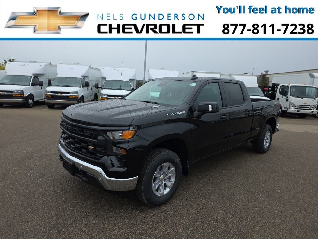 Nels Gunderson Chevrolet is excited to offer this stout 2026 Chevrolet Silverado 1500 WT in Black, beautifully equipped with Preferred Equipment Group 1WT (3.5 Monochromatic Display Driver Info Center, 4-Way Manual Driver Seat Adjuster, Black (Semi-Gloss) Front Bumper, Black (Semi-Gloss) Rear Bumper, Black Manual Outside Mirrors, Bluetooth® For Phone, Electronic Cruise Control, Front Frame-Mounted Black Recovery Hooks, HD Rear Vision Camera, Inside Rear-View Mirror w/Tilt, Locking Tailgate, Manual Tailgate Function w/No EZ Lift, Manual Tilt Wheel Steering Column, OnStar Services Capable, Power Front Windows w/Driver Express Up/Down, Power Front Windows w/Passenger Express Down, Power Rear Windows w/Express Down, Rear 60/40 Folding Bench Seat (Folds Up), Remote Keyless Entry, Rubberized-Vinyl Floor Covering, SiriusXM Delete, Solar Absorbing Tinted Glass, Standard Tailgate, Teen Driver, Tire Pressure Monitoring System, and Wi-Fi Hot Spot Capable), Standard Suspension Package, Trailering Package (Hitch Guidance), WT Convenience Package (Deep-Tinted Glass, Electric Rear-Window Defogger, and Heated Power-Adjustable Outside Mirrors), WT Safety Package (Front Chrome Bumper, High Gloss Black Mirror Caps, Lane Change Alert w/Side Blind Zone Alert, Perimeter Lighting, Rear Chrome Bumper, Rear Cross Traffic Braking, Rear Pedestrian Alert, and Ultrasonic Front & Rear Park Assist), WT Value Package, 8-Speed Automatic, 4WD, Black Cloth, 120-Volt Bed Mounted Power Outlet, 120-Volt Interior Power Outlet, 220 Amp Alternator, 3.42 Rear Axle Ratio, 4-Wheel Disc Brakes, 40/20/40 Front Split-Bench Seat, 6 Speakers, 6-Speaker Audio System, ABS brakes, Air Conditioning, Apple CarPlay/Android Auto, Auto High-beam Headlights, Auto-Locking Rear Differential, Automatic Emergency Braking, Brake assist, Compass, Delay-off headlights, Driver door bin, Dual front impact airbags, Dual front side impact airbags, Dual Rear USB Ports (Charge Only), Electronic Stability Control, Emergency communication system: OnStar, EZ Lift Power Lock & Release Tailgate, Following Distance Indicator, Forward Collision Alert, Front anti-roll bar, Front Center Armrest w/Storage, Front License Plate Kit, Front Pedestrian Braking, Front reading lights, Front wheel independent suspension, Fully automatic headlights, Illuminated entry, Integrated Trailer Brake Controller, IntelliBeam Automatic High Beam On/Off, Lane Keep Assist w/Lane Departure Warning, LED Cargo Area Lighting, Low tire pressure warning, Occupant sensing airbag, Outside temperature display, Overhead airbag, Overhead console, Panic alarm, Passenger door bin, Passenger vanity mirror, Power steering, Power windows, Premium audio system: Chevrolet Infotainment 3, Radio data system, Radio: Chevrolet Infotainment 3 System, Rear reading lights, Rear step bumper, Remote keyless entry, SiriusXM Trial Subscription, Speed control, Speed-sensing steering, Split folding rear seat, Tachometer, Tilt steering wheel, Traction control, Trip computer, Variably intermittent wipers, Vinyl Seat Trim, Voltmeter, Wheels: 17 x 8 Bright Silver Painted Aluminum, and Wheels: 17 x 8 Ultra Silver Painted Steel Backup Camera Bluetooth. Price includes: $1000 - Bonus Cash. Exp. 01/02/2026 $3000 - Customer Cash. Exp. 01/02/2026
