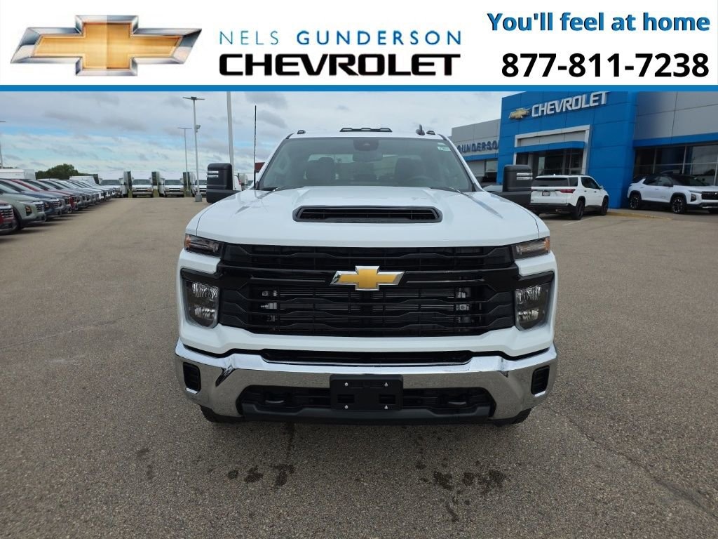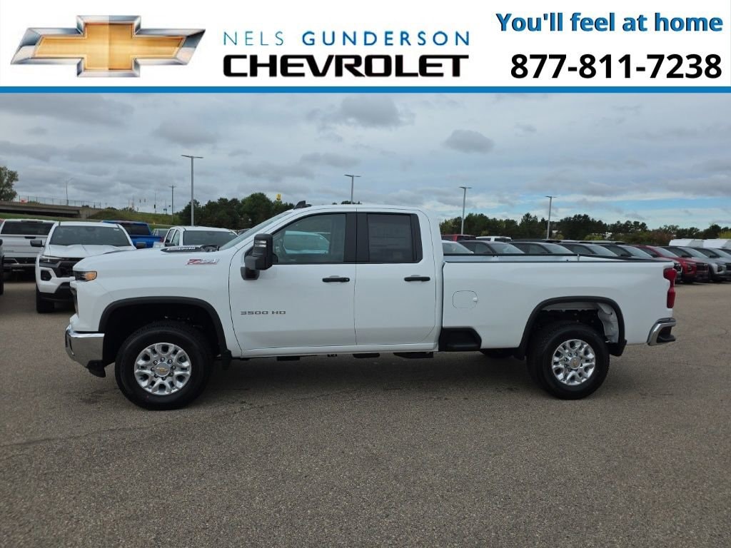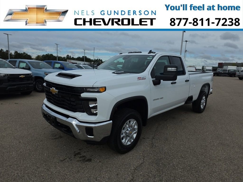 Summit White 2026 Chevrolet Silverado 3500HD Work Truck Commercial 4WD 10-Speed Automatic Duramax 6.6L V8 Turbodiesel 10-Speed Automatic, 4WD, Jet Black Vinyl.Nels Gunderson Chevrolet is very proud to offer this dependable 2026 Chevrolet Silverado 3500HD Work Truck in Summit White, beautifully equipped with Preferred Equipment Group 1WT (170 Amp Alternator, 2-Speed Electronic Shift Transfer Case, 3.5 Diagonal Monochromatic Display DIC, Black Front Bumper, Black Mirror Caps, Black Rear Bumper, Bluetooth® For Phone, Chevrolet Connected Access Capable, Compass Located In Instrument Cluster, HD Rear Vision Camera, High-Visibility Molded in Black Outside Mirrors, Locking Tailgate, Manual Tailgate Function w/No EZ Lift, Manual Tilt-Wheel Steering Column, OnStar Services Capable, Power Door Locks, Power Front Windows w/Driver Express Up/Down, Power Rear Windows w/Express Down, Push Button Start, Rear 60/40 Folding Bench Seat (Folds Up), Remote Keyless Entry, Rubberized-Vinyl Floor Covering, Solar Absorbing Tinted Glass, Standard Tailgate, Steering Wheel Mounted Electronic Cruise Control, and Wi-Fi Hotspot Capable), Snow Plow Prep/Camper Package (220 Amp Alternator), Suspension Package, WT Convenience Package (Deep-Tinted Glass, Electric Rear-Window Defogger, EZ Lift Power Lock & Release Tailgate, and Outside Power-Adjustable Mirrors), 10-Speed Automatic, 4WD, Jet Black Vinyl, 120-Volt Bed Mounted Power Outlet, 120-Volt Interior Power Outlet, 4-Way Manual Driver Seat Adjuster, 4-Way Manual Passenger Seat Adjuster, 4-Wheel Disc Brakes, 6 Speakers, 6-Speaker Audio System Feature, ABS brakes, Air Conditioning, AM/FM radio, Apple CarPlay/Android Auto, Auto High-beam Headlights, Bed View Camera, Brake assist, Compass, Delay-off headlights, Driver door bin, Dual front impact airbags, Dual front side impact airbags, Durabed Pickup Bed, Electronic Stability Control, Emergency communication system, Engine Block Heater, Exhaust Brake, Front 40/20/40 Split-Bench Seats w/Lockable Storage, Front anti-roll bar, Front Center Armrest w/Storage, Front Chrome Bumper, Front License Plate Kit, Front reading lights, Front wheel independent suspension, Fully automatic headlights, Heavy-Duty 80 Amp-Hr Battery, High Idle Switch, Illuminated entry, Inside Rear-View Auto-Dimming Mirror, LED Cargo Area Lighting, Low tire pressure warning, Occupant sensing airbag, Outside temperature display, Overhead airbag, Overhead console, Panic alarm, Passenger door bin, Passenger vanity mirror, Power steering, Power windows, Premium audio system: Chevrolet Infotainment System 3, Radio: Chevrolet Infotainment 3 System, Rear Chrome Bumper, Rear reading lights, Rear step bumper, Remote keyless entry, Speed control, Split folding rear seat, Tachometer, Tilt steering wheel, Traction control, Trip computer, Upfitter Switch Kit (5), Variably intermittent wipers, Vinyl Seat Trim, Voltmeter, and Winter Grille Cover Backup Camera Bluetooth. Price includes: $1000 - Customer Cash. Exp. 11/03/2025