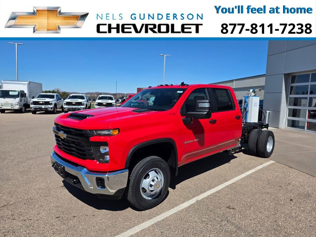 Nels Gunderson Chevrolet is proud to offer this rock solid 2026 Chevrolet Silverado 3500HD Work Truck in Red Hot, beautifully equipped with Snow Plow Prep Package, Suspension Package, WT Convenience Package (Deep-Tinted Glass and Electric Rear-Window Defogger), 10-Speed Automatic, 4WD, Jet Black Vinyl, 120-Volt (400 Watts) Interior Power Outlet, 17 Painted Steel Wheels, 170 Amp Alternator, 2-Speed Electronic Shift Transfer Case, 3.5 Diagonal Monochromatic Display DIC, 3.73 Rear Axle Ratio, 4-Way Manual Driver Seat Adjuster, 4-Way Manual Passenger Seat Adjuster, 4-Wheel Disc Brakes, 40 Gallon (151L) Rear Only Fuel Tank, 6 Speakers, 6-Speaker Audio System Feature, ABS brakes, Air Conditioning, AM/FM radio, Auto High-beam Headlights, Auto-Dimming Inside Rear-View Mirror, Black Front Bumper, Black Mirror Caps, Bluetooth® For Phone, Brake assist, Compass, Compass Located in Instrument Cluster, Delay-off headlights, Driver door bin, Dual front impact airbags, Dual front side impact airbags, Dual rear wheels, Electronic Stability Control, Emergency communication system, Front 40/20/40 Split-Bench Seat, Front anti-roll bar, Front Center Armrest w/Storage, Front Chrome Bumper, Front Grille Bar with Black Mesh Inserts, Front reading lights, Front wheel independent suspension, Fully automatic headlights, Heavy-Duty 80 Amp-Hour Battery, High Idle Switch, High-Visibility Molded in Black Outside Mirrors, Illuminated entry, Low tire pressure warning, Manual Tilt Inside Rearview Mirror, Manual Tilt-Wheel Steering Column, Occupant sensing airbag, OnStar Services Capable, Outside temperature display, Overhead airbag, Overhead console, Panic alarm, Passenger door bin, Passenger vanity mirror, Perimeter Lighting, Power Rear Windows with Express Down, Power steering, Power windows, Power-Adjustable Outside Mirrors, Premium audio system: Chevrolet Infotainment System 3, Radio: Chevrolet Infotainment 3 System, Rear 60/40 Folding Bench Seat (folds Up), Rear reading lights, Remote keyless entry, Rubberized-Vinyl Floor Covering, Solar Absorbing Tinted Glass, Speed control, Split folding rear seat, Steering Wheel Mounted Electronic Cruise Control, Tachometer, Tilt steering wheel, Traction control, Trip computer, Upfitter Switch Kit (5), Variably intermittent wipers, Vinyl Seat Trim, and Voltmeter Backup Camera Bluetooth. Recent Arrival! Price includes: $1000 - Customer Cash. Exp. 04/30/2026
