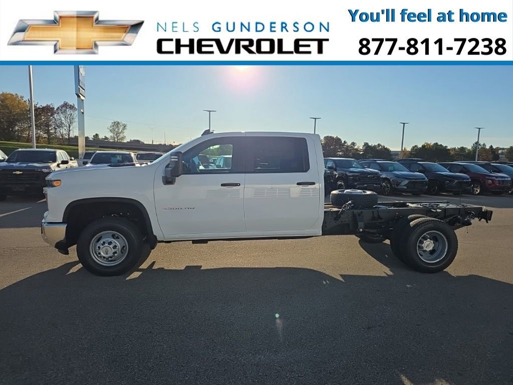Summit White 2026 Chevrolet Silverado 3500HD Work Truck Commercial 4WD 10-Speed Automatic 6.6L V8 10-Speed Automatic, 4WD, Jet Black Vinyl.Nels Gunderson Chevrolet is pumped up to offer this hard-working 2026 Chevrolet Silverado 3500HD Work Truck in Summit White, beautifully equipped with Snow Plow Prep Package (220 Amp Alternator), Suspension Package, WT Convenience Package (Electric Rear-Window Defogger), 10-Speed Automatic, 4WD, Jet Black Vinyl, 120-Volt (400 Watts) Interior Power Outlet, 17 Painted Steel Wheels, 170 Amp Alternator, 2-Speed Active Electronic AutoTrac Transfer Case, 2-Speed Electronic Shift Transfer Case, 3.5 Diagonal Monochromatic Display DIC, 3.73 Rear Axle Ratio, 4-Way Manual Driver Seat Adjuster, 4-Way Manual Passenger Seat Adjuster, 4-Wheel Disc Brakes, 6 Speakers, 6-Speaker Audio System Feature, 700 Cold-Cranking Amps/70 Amp-Hr Auxiliary Battery, ABS brakes, Air Conditioning, AM/FM radio, Auto High-beam Headlights, Black Front Bumper, Black Mirror Caps, Bluetooth® For Phone, Brake assist, Compass, Compass Located in Instrument Cluster, Delay-off headlights, Driver door bin, Dual front impact airbags, Dual front side impact airbags, Dual rear wheels, Electronic Stability Control, Emergency communication system, Front 40/20/40 Split-Bench Seat, Front anti-roll bar, Front Center Armrest w/Storage, Front Chrome Bumper, Front Grille Bar with Black Mesh Inserts, Front reading lights, Front wheel independent suspension, Fully automatic headlights, Heavy-Duty 80 Amp-Hour Battery, High-Visibility Molded in Black Outside Mirrors, Illuminated entry, Low tire pressure warning, Manual Tilt Inside Rearview Mirror, Manual Tilt-Wheel Steering Column, Occupant sensing airbag, OnStar Services Capable, Outside temperature display, Overhead airbag, Overhead console, Panic alarm, Passenger door bin, Passenger vanity mirror, Power Rear Windows with Express Down, Power steering, Power windows, Premium audio system: Chevrolet Infotainment System 3, Radio: Chevrolet Infotainment 3 System, Rear 60/40 Folding Bench Seat (folds Up), Rear reading lights, Remote keyless entry, Rubberized-Vinyl Floor Covering, Solar Absorbing Tinted Glass, Speed control, Split folding rear seat, Steering Wheel Mounted Electronic Cruise Control, Tachometer, Tilt steering wheel, Traction control, Trip computer, Upfitter Switch Kit (5), Variably intermittent wipers, Vinyl Seat Trim, and Voltmeter Backup Camera Bluetooth. Price includes: $1000 - Customer Cash. Exp. 01/02/2026