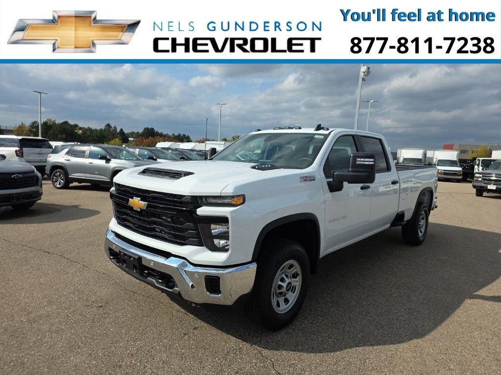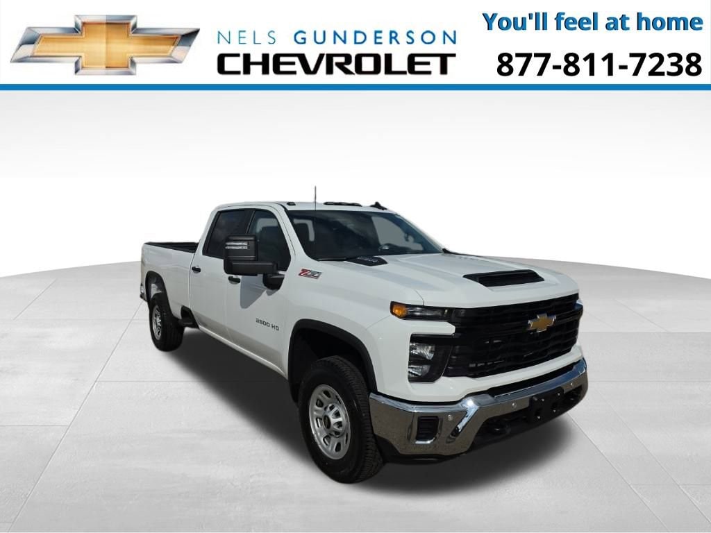 Summit White 2026 Chevrolet Silverado 3500HD Work Truck Commercial 4WD 10-Speed Automatic 6.6L V8 10-Speed Automatic, 4WD, Black Cloth.Nels Gunderson Chevrolet is pleased to offer this trusty 2026 Chevrolet Silverado 3500HD Work Truck in Summit White, beautifully equipped with Preferred Equipment Group 1WT (170 Amp Alternator, 2-Speed Electronic Shift Transfer Case, 3.5 Diagonal Monochromatic Display DIC, Black Front Bumper, Black Mirror Caps, Black Rear Bumper, Bluetooth® For Phone, Chevrolet Connected Access Capable, Compass Located In Instrument Cluster, HD Rear Vision Camera, High-Visibility Molded in Black Outside Mirrors, Locking Tailgate, Manual Tailgate Function w/No EZ Lift, Manual Tilt-Wheel Steering Column, OnStar Services Capable, Power Door Locks, Power Front Windows w/Driver Express Up/Down, Power Rear Windows w/Express Down, Push Button Start, Rear 60/40 Folding Bench Seat (Folds Up), Remote Keyless Entry, Rubberized-Vinyl Floor Covering, Solar Absorbing Tinted Glass, Standard Tailgate, Steering Wheel Mounted Electronic Cruise Control, and Wi-Fi Hotspot Capable), Snow Plow Prep/Camper Package (220 Amp Alternator), Suspension Package, WT Convenience Package (Deep-Tinted Glass, Electric Rear-Window Defogger, and EZ Lift Power Lock & Release Tailgate), WT Safety Package (Lane Change Alert w/Side Blind Zone Alert, Rear Chrome Bumper, Rear Cross Traffic Alert, and Ultrasonic Front & Rear Park Assist), 10-Speed Automatic, 4WD, Black Cloth, 120-Volt Bed Mounted Power Outlet, 120-Volt Interior Power Outlet, 3.73 Rear Axle Ratio, 4-Way Manual Driver Seat Adjuster, 4-Way Manual Passenger Seat Adjuster, 4-Wheel Disc Brakes, 6 Speakers, 6-Speaker Audio System Feature, 700 Cold-Cranking Amps/70 Amp-hr Auxiliary Battery, ABS brakes, Air Conditioning, AM/FM radio, Apple CarPlay/Android Auto, Auto High-beam Headlights, Auto-Dimming Inside Rear-View Mirror, Bed View Camera, Brake assist, Chevytec Spray-On Black Bedliner, Compass, Delay-off headlights, Driver door bin, Dual front impact airbags, Dual front side impact airbags, Durabed Pickup Bed, Electronic Stability Control, Emergency communication system, Front 40/20/40 Split-Bench Seats w/Lockable Storage, Front anti-roll bar, Front Center Armrest w/Storage, Front Chrome Bumper, Front License Plate Kit, Front reading lights, Front wheel independent suspension, Fully automatic headlights, Heavy-Duty 80 Amp-Hr Battery, Illuminated entry, Inside Rear-View Auto-Dimming Mirror, LED Cargo Area Lighting, Low tire pressure warning, Occupant sensing airbag, Outside temperature display, Overhead airbag, Overhead console, Panic alarm, Passenger door bin, Passenger vanity mirror, Perimeter Lighting, Power steering, Power windows, Power-Adjustable Outside Mirrors, Premium audio system: Chevrolet Infotainment System 3, Radio: Chevrolet Infotainment 3 System, Rear reading lights, Rear step bumper, Remote keyless entry, Speed control, Split folding rear seat, Tachometer, Tilt steering wheel, Traction control, Trip computer, Upfitter Switch Kit (5), Variably intermittent wipers, Vinyl Seat Trim, and Voltmeter Backup Camera Bluetooth. Price includes: $1000 - Customer Cash. Exp. 12/01/2025