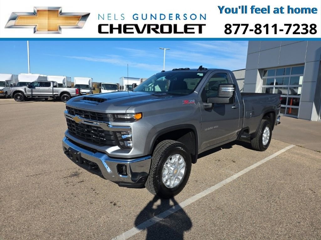 Nels Gunderson Chevrolet is pumped up to offer this hard-working 2026 Chevrolet Silverado 3500HD LT in Sterling Gray Metallic, beautifully equipped with Convenience Package (10-Way Power Driver Seat Adjuster with Lumbar, Dual-Zone Automatic Climate Control, Front LED Fog Lamps, LED Cargo Area Lighting, and Manual Tilt-Wheel/Telescoping Steering Column), Gooseneck/5th Wheel Prep Package (Chevytec Spray-on Black Bedliner), Heat Package (Heated Driver and Front Outboard Passenger Seats and Heated Steering Wheel), Hitch Package, Preferred Equipment Group 1LT (170 Amp Alternator, 2-Speed Electronic Shift Transfer Case, 4-Way Manual Driver Seat Adjuster, Black Mirror Caps, Bluetooth® For Phone, Chevrolet Connected Access Capable, Color-Keyed Carpeting Floor Covering, Compass Located in Instrument Cluster, Deep-Tinted Glass, Durabed Pickup Bed, EZ Lift Power Lock and Release Tailgate, Front Rubberized Vinyl Floor Mats, Halogen Reflector Headlamps, HD Rear Vision Camera, Keyless Open and Start, OnStar Services Capable, Outside Power-Adjustable Mirrors, Power Door Locks, Power Front Windows with Driver Express Up/Down, Power Front Windows with Passenger Express Down, Push Button Start, SiriusXM with 360L Trial Subscription, Standard Tailgate, Steering Wheel Audio Controls, Steering Wheel Mounted Electronic Cruise Control, Wi-Fi Hotspot Capable, and Wrapped Steering Wheel), Remote Start Package (Electric Rear-Window Defogger, Remote Vehicle Starter System, and Unauthorized Entry Theft-Deterrent System), Snow Plow Prep/Camper Package (220 Amp Alternator), Suspension Package, 10-Speed Automatic, 4WD, Black Cloth, 2 Speakers, 2-Speaker Audio System Feature, 2-Speed Active Transfer Case, 4-Way Manual Passenger Seat Adjuster, 4-Wheel Disc Brakes, ABS brakes, Air Conditioning, AM/FM radio: SiriusXM with 360L, Apple CarPlay/Android Auto, Auto High-beam Headlights, Auto-Dimming Inside Rear-View Mirror, Brake assist, Bumpers: chrome, Cloth Seat Trim, Compass, Delay-off headlights, Driver door bin, Driver vanity mirror, Dual front impact airbags, Dual front side impact airbags, Electronic Stability Control, Emergency communication system, Engine Block Heater, Exhaust Brake, Front 40/20/40 Split-Bench Seats with Lockable Storage, Front anti-roll bar, Front Center Armrest w/Storage, Front License Plate Kit, Front reading lights, Front wheel independent suspension, Fully automatic headlights, Heated door mirrors, Heavy-Duty 80 Amp-Hour Battery, High Idle Switch, Illuminated entry, Low tire pressure warning, Occupant sensing airbag, Outside temperature display, Overhead airbag, Overhead console, Panic alarm, Passenger door bin, Passenger vanity mirror, Perimeter Lighting, Power door mirrors, Power steering, Power windows, Power-Adjustable Outside Mirrors, Premium audio system: Chevrolet Infotainment 3 Premium, Radio: Chevrolet Infotainment 3 Premium System, Rear step bumper, Remote keyless entry, Speed control, Steering wheel mounted audio controls, Tachometer, Tilt steering wheel, Traction control, Trip computer, Turn signal indicator mirrors, Upfitter Switch Kit (5), Variably intermittent wipers, Voltmeter, and Winter Grille Cover Backup Camera Bluetooth. Price includes: $1000 - Customer Cash. Exp. 01/02/2026