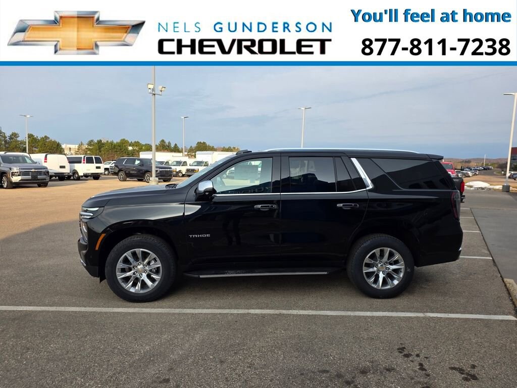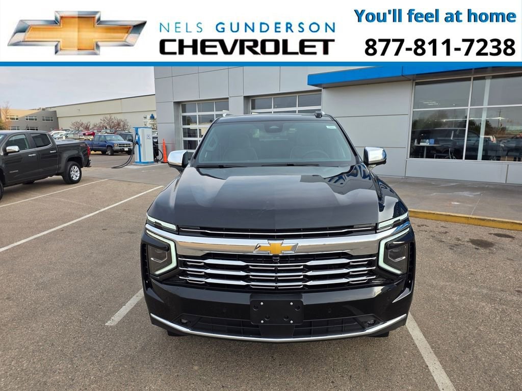 Black 2026 Chevrolet Tahoe Premier 4WD 10-Speed Automatic with Overdrive EcoTec3 5.3L V8 4WD, Jet Black Leather.Nels Gunderson Chevrolet is excited to offer this great-looking 2026 Chevrolet Tahoe Premier in Black, beautifully equipped with Advanced Trailering Package (Blind Zone Steering Assist with Trailering, Hitch View with Pan/Zoom Image Adjustment, and Smart Trailer Integration Indicator), License Plate Front Mounting Package, Max Trailering Package (2-Speed Active Electronic AutoTrac Transfer Case, Hill Descent Control, and Integrated Trailer Brake Controller), Preferred Equipment Group 1LZ (1st and 2nd Row Color-Keyed Carpeted Floor Mats, 20 x 9 Polished Aluminum Wheels, 3-Spoke Wrapped Steering Wheel, 3rd Row 60/40 Power-Folding Split-Bench Seat, Auto-Dimming Inside Rear-View Mirror, Bose 10-Speaker Centerpoint Surround Audio System Feature, Bright Front and Rear Door Sill Plates, Chrome Door Handles with Body-Color Strip, Chrome Mirror Caps, Color-Keyed Carpeting Floor Covering, Dual Exhaust System, Floor Console, Front Bucket Seats, Front LED Fog Lamps, Frontal Driver and Outboard Passenger Airbags, Heated 2nd Row Outboard Seats, Heated Steering Wheel, Interior Camera, Key Card, LED Headlamps with LED Daytime Running Lamps, LED Tail Lamps, Magnetic Ride Control Suspension, Memory Settings, Outside Heated Power-Adjustable Mirrors, Power Release 2nd Row Bucket Seats, Power Tilt and Telescopic Steering Column, Rear Power Liftgate, Remote Start, SiriusXM with 360L Trial Subscription, Universal Home Remote, and Wireless Phone Charging), Sun and Tow Package (Dual-Pane Power Panoramic Sunroof), 4WD, Jet Black Leather, 10 Speakers, 3.23 Rear Axle Ratio, 3rd row seats: split-bench, 4-Way Power Driver Lumbar Seat Adjuster, 4-Way Power Front Passenger Lumbar Seat Adjuster, 4-Wheel Disc Brakes, 8-Way Power Driver Seat Adjuster, 8-Way Power Front Passenger Seat Adjuster, ABS brakes, Adaptive suspension, Air Conditioning, Alloy wheels, AM/FM radio: SiriusXM with 360L, Apple CarPlay/Android Auto, Auto High-beam Headlights, Auto-dimming door mirrors, Auto-dimming Rear-View mirror, Auto-leveling suspension, Automatic temperature control, Brake assist, Bumpers: body-color, Compass, Delay-off headlights, Driver and Front Passenger Heated and Ventilated Seats, Driver door bin, Driver vanity mirror, Dual front impact airbags, Dual front side impact airbags, Electronic Stability Control, Emergency communication system: OnStar and Chevrolet connected services capable, Exterior Parking Camera Rear, Extra Capacity Cooling System, Four wheel independent suspension, Front anti-roll bar, Front Center Armrest, Front dual zone A/C, Front fog lights, Front reading lights, Fully automatic headlights, Garage door transmitter, Heated door mirrors, Heated Driver and Front Passenger Seats, Heated front seats, Heated rear seats, Heated steering wheel, Illuminated entry, Low tire pressure warning, Memory seat, Navigation system: Google built-in compatibility (select service plan required, terms and limitations apply), Occupant sensing airbag, Outside temperature display, Overhead airbag, Overhead console, Panic alarm, Passenger door bin, Passenger vanity mirror, Perforated Leather Seat Trim, Power door mirrors, Power driver seat, Power Liftgate, Power passenger seat, Power steering, Power windows, Premium audio system: Chevrolet Infotainment 3 Premium, Radio data system, Radio: 17.7 Diagonal Advanced Color LCD Display, Rain sensing wipers, Rear air conditioning, Rear anti-roll bar, Rear reading lights, Rear window defroster, Rear window wiper, Remote keyless entry, Security system, Speed control, Speed-sensing steering, Split folding rear seat, Spoiler, Steering wheel memory, Steering wheel mounted audio controls, Tachometer, Telescoping steering wheel, Tilt steering wheel, Traction control, Trip computer, Turn signal indicator mirrors, Variably intermittent wipers, Ventilated front seats, and Voltmeter Backup Camera Bluetooth.Awards: