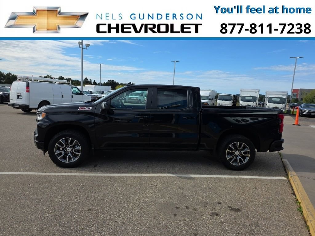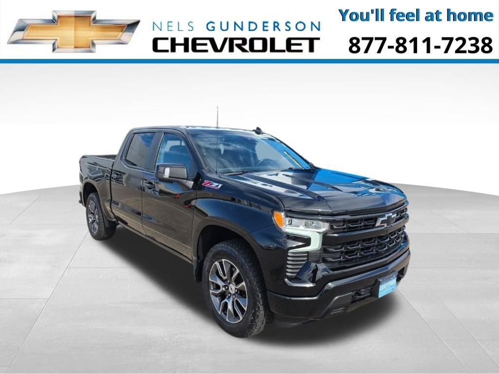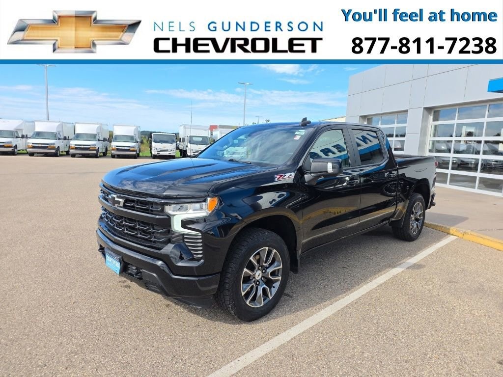 Nels Gunderson Chevrolet is honored to offer this stout 2022 Chevrolet Silverado 1500 RST in Black, beautifully equipped with All Star Edition Plus (Wheels: 20 x 9 Painted Aluminum), Convenience Package (10-Way Power Driver Seat w/Lumbar, 120-Volt Bed Mounted Power Outlet, 120-Volt Instrument Panel Power Outlet, Dual Rear USB Ports (Charge Only), Dual-Zone Automatic Climate Control, Electric Rear-Window Defogger, Heated Driver & Front Outboard Passenger Seats, Heated Steering Wheel, Keyless Open & Start, Leather Wrapped Steering Wheel, Manual Tilt/Telescoping Steering Column, Remote Vehicle Starter System, and Theft Deterrent System (Unauthorized Entry)), Convenience Package II (Hitch Guidance w/Hitch View, Integrated Trailer Brake Controller, Power Sliding Rear Window w/Rear Defogger, Premium Bose 7-Speaker Sound System, Trailering App, and Universal Home Remote), Preferred Equipment Group 1SP (12.3 Multicolor Reconfigurable Digital Display, 6-Speaker Audio System, All-Star Edition, Auto-Locking Rear Differential, Bluetooth® For Phone, Chevrolet Connected Access Capable, Color-Keyed Carpeting Floor Covering, Compass, Deep-Tinted Glass, Electrical Steering Column Lock, Electronic Cruise Control, EZ Lift Power Lock & Release Tailgate, Front Frame-Mounted Black Recovery Hooks, Front LED Fog Lamps, Front Rubberized Vinyl Floor Mats, HD Rear Vision Camera, Heated Power-Adjustable Outside Mirrors, High Gloss Black Mirror Caps, Inside Rear-View Mirror w/Tilt, LED Cargo Area Lighting, OnStar & Chevrolet Connected Services Capable, Power Front Windows w/Driver Express Up/Down, Power Front Windows w/Passenger Express Down, Power Rear Windows w/Express Down, Rear 60/40 Folding Bench Seat (Folds Up), Rear Rubberized-Vinyl Floor Mats, SiriusXM w/360L, Standard Tailgate, Steering Wheel Audio Controls, Wi-Fi Hot Spot Capable, and Wireless Phone Projection), Protection Package (Chevytec Spray-On Black Bedliner and Rear Wheelhouse Liners), Safety Package (HD Surround Vision, Perimeter Lighting, Rear Cross Traffic Alert-Braking, Rear Park Assist, Rear Pedestrian Detection, Trailer Camera Provisions, and Trailer Side Blind Zone Alert), Standard Suspension Package, Trailering Package (Hitch Guidance), Z71 Off-Road & Protection Package (All-Weather Floor Liner (LPO) (AAK)), Z71 Off-Road Package (Dual Exhaust w/Polished Outlets, Heavy-Duty Air Filter, Hill Descent Control, and Off-Road Suspension), 10-Speed Automatic, 4WD, Black Cloth, 2 USB Data Ports, 220 Amp Alternator, 3.23 Rear Axle Ratio, 4-Wheel Disc Brakes, 40/20/40 Front Split-Bench Seat, 6 Speakers, ABS brakes, Air Conditioning, Alloy wheels, AM/FM radio: SiriusXM with 360L, Apple CarPlay/Android Auto, Auto High-beam Headlights, Automatic Emergency Braking, Automatic temperature control, Brake assist, Bumpers: body-color, Cloth Seat Trim, Delay-off headlights, Driver door bin, Driver vanity mirror, Dual front impact airbags, Dual front side impact airbags, Electronic Stability Control, Electronic Transmission Range Selector Shifter, Floor Mounted Center Console, Following Distance Indicator, Forward Collision Alert, Front anti-roll bar, Front Bucket Seats, Front Center Armrest w/Storage, Front dual zone A/C, Front fog lights, Front License Plate Kit, Front Pedestrian Braking, Front reading lights, Front wheel independent suspension, Fully automatic headlights, Heated door mirrors, Heated front seats, Heated steering wheel, Illuminated entry, IntelliBeam Automatic High Beam On/Off, Lane Keep Assist w/Lane Departure Warning, Low tire pressure warning, Multi-Flex Tailgate, Not Equipped w/Dynamic Fuel Management, Not Equipped w/Rear Park Assist, Not Equipped w/Steering Column Lock, Occupant sensing airbag, Outside temperature display, Overhead airbag, Overhead console, Panic alarm, Passenger door bin, Passenger vanity mirror, Power door mirrors, Power driver seat, Power steering, Power windows, Premium audio system: Chevrolet Infotainment 3 Premium, Radio data system, Radio: Chevrolet In