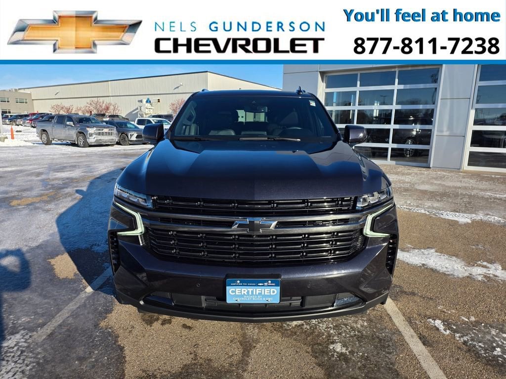 Nels Gunderson Chevrolet is very proud to offer this beautiful 2022 Chevrolet Tahoe RST in Dark Ash Metallic, beautifully equipped with Driver Alert Package (Lane Change Alert w/Side Blind Zone Alert and Rear Cross Traffic Alert), License Plate Front Mounting Package, Luxury Package (2nd Row Pwr Release 60/40 Split-Folding Bench Seat, 3rd Row 60/40 Power-Folding Split-Bench Seat, HD Surround Vision, Heated 2nd Row Outboard Seats, Heated Steering Wheel, Memory Settings, Outside Heated Power-Adjustable Mirrors, Power Tilt & Telescopic Steering Column, and Rear Pedestrian Alert), Preferred Equipment Group 1SP (1st & 2nd Row Color-Keyed Carpeted Floor Mats, Auto-Dimming Inside Rear-View Mirror, Automatic Stop/Start, Bose 9-Speaker Stereo Audio System Feature, Bright Front & Rear Door Sill Plates, Color-Keyed Carpeting Floor Covering, Driver & Front Outboard Passenger Airbags, Enhanced Driver Information Center, Floor Console w/Storage Area, Hands-Free Rear Power Programmable Liftgate, Infotainment Display, Leather-Wrapped Steering Wheel, LED Daytime Running Lamps, Memory Settings for Driver, Remote Start, SiriusXM Radio w/360L, Start/Stop System Disable Button, Universal Home Remote, and Wireless Charging), Sport Performance Package (Dual Exhaust System and Magnetic Ride Control Suspension), 4WD, Jet Black/Victory Red Leather, 10-Way Power Driver & Passenger Seat Adjusters, 3.23 Rear Axle Ratio, 3rd row seats: split-bench, 4-Wheel Disc Brakes, 9 Speakers, ABS brakes, Air Conditioning, Alloy wheels, AM/FM radio: SiriusXM with 360L, Apple CarPlay/Android Auto, Auto High-beam Headlights, Auto-dimming Rear-View mirror, Automatic temperature control, Brake assist, Bumpers: body-color, Compass, Delay-off headlights, Driver door bin, Driver vanity mirror, Dual front impact airbags, Dual front side impact airbags, Dual-Pane Power Panoramic Sunroof, Electronic Stability Control, Emergency communication system: OnStar and Chevrolet connected services capable, Four wheel independent suspension, Front anti-roll bar, Front Bucket Seats, Front Center Armrest, Front dual zone A/C, Front High-Back Reclining Bucket Seats, Front reading lights, Fully automatic headlights, Garage door transmitter, Heated door mirrors, Heated Driver & Front Passenger Seats, Heated front seats, Illuminated entry, Leather steering wheel, Low tire pressure warning, Memory seat, Navigation System, Not Equipped w/Front & Rear Park Assist, Not Equipped w/Steering Column Lock, Occupant sensing airbag, Outside temperature display, Overhead airbag, Overhead console, Panic alarm, Passenger door bin, Passenger vanity mirror, Perforated Leather Seat Trim, Power door mirrors, Power driver seat, Power Liftgate, Power passenger seat, Power Release 2nd Row Bucket Seats, Power steering, Power windows, Premium audio system: Chevrolet Infotainment System 3, Premium Smooth Ride Suspension, Radio: Chevrolet Infotainment 3 Premium System, Rain sensing wipers, Rear air conditioning, Rear anti-roll bar, Rear reading lights, Rear seat center armrest, Rear window defroster, Rear window wiper, Remote keyless entry, Roof rack: rails only, Security system, Set of 4 Wheel Locks (LPO), Speed control, Speed-sensing steering, Split folding rear seat, Spoiler, Steering wheel mounted audio controls, Tachometer, Telescoping steering wheel, Tilt steering wheel, Traction control, Trip computer, Variably intermittent wipers, Voltmeter, and Wheels: 22 x 9 Bright Machined. 4WD, Jet Black/Victory Red Leather. Priced below KBB Fair Purchase Price! Odometer is 13302 miles below market average!Awards:* ALG Residual Value 2022 Chevrolet Tahoe RST You'll Feel at Home!! www.osseoauto.com.